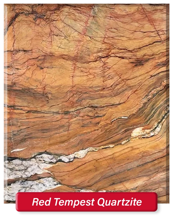 Quartzite is a premium natural stone that combines the durability of Granite with a luxurious, high-end appearance. Its known for its dramatic veining, rich color variations, and gemstone-like color depth. As an added bonus, it’s also highly resistant to heat and scratches.