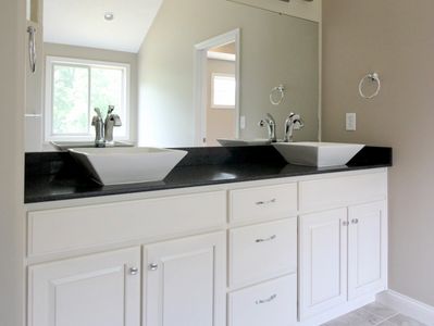 Looking for a stylish yet budget-friendly upgrade for your bathroom? We offer a stone and quartz vanity top program for our 2cm slabs and remnants. These vanity tops are priced up to 30% less than standard 3cm granite tops. Each top comes with a white oval undermount sink and is available in a range of standard sizes, from 31" to 86", including both single and double bowl options. If you're interested, stop by our showroom in Madison, Indiana to learn more about our program.